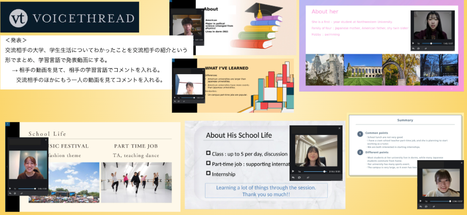 三回の交流がおわると、交流内容の発表が行われました。交流の中で学んだ、ペアやペアの学校生活について3分程度にまとめ、ウェブ上にアップロードする形で共有しました。今回のセッションでは、キックオフ交流以来、ペア以外と交流する機会がなかったので、三か月ぶりに他の参加者について知る機会となりました。